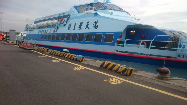 進香日巧遇海神颱風來襲,全台灣的船隻皆被港務局下令停止出航,唯獨我們進香團包船搭乘的「滿天星1號」取得唯一出航的許可,當日浪高十米,海象可說是驚險萬分,但我們向神明上香詢問後給出了可以出航的答案;於是我們準備了兩大袋由神明降旨的金紙上船出發前往進香。